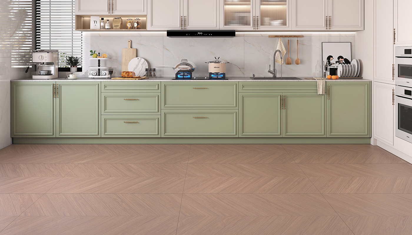 将密致桉木纹理和鱼骨型设计结合